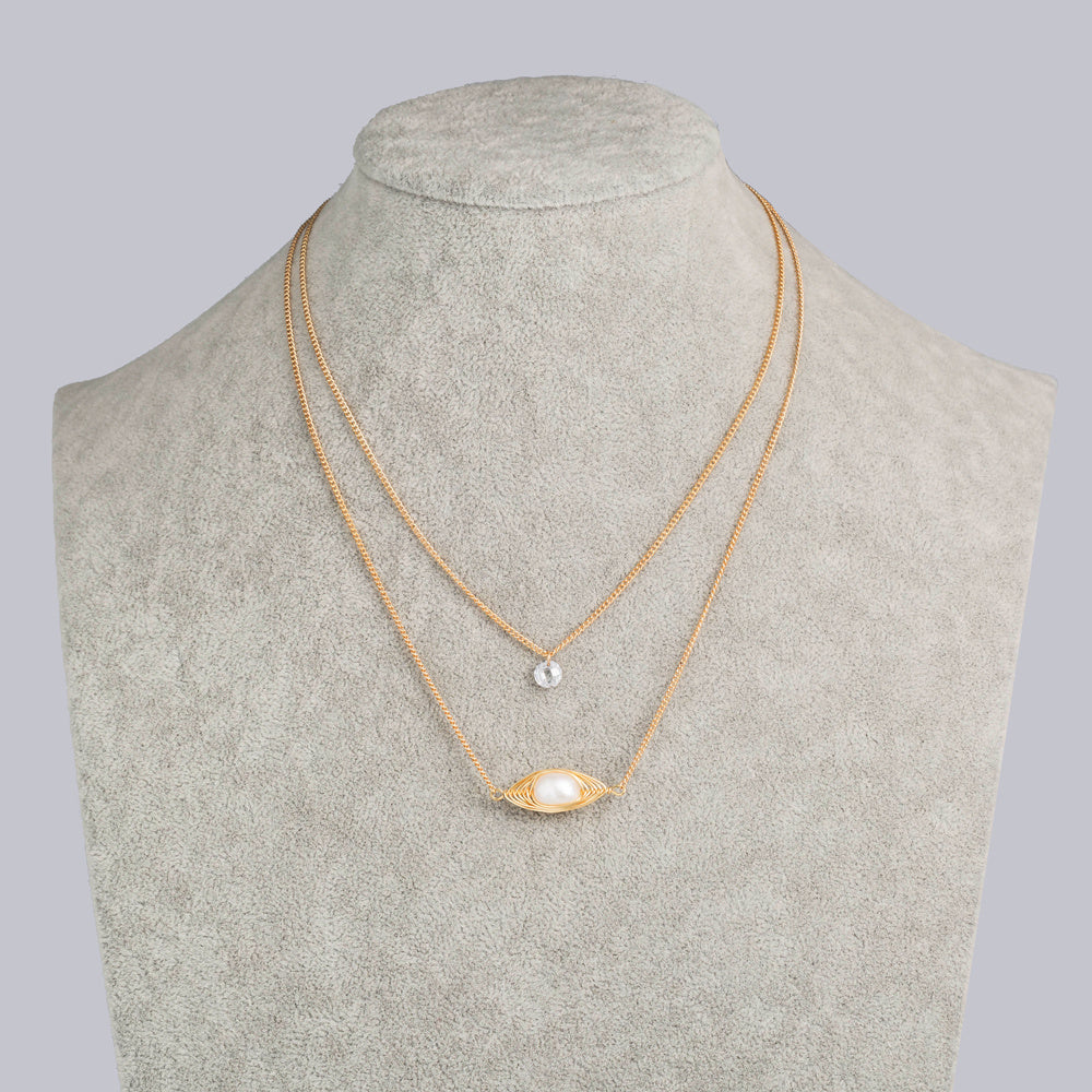 Cross-border personality temperament natural freshwater pearl pendant necklace female translucent zircon simple double layered necklace