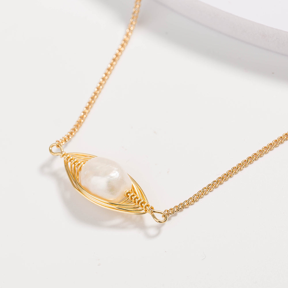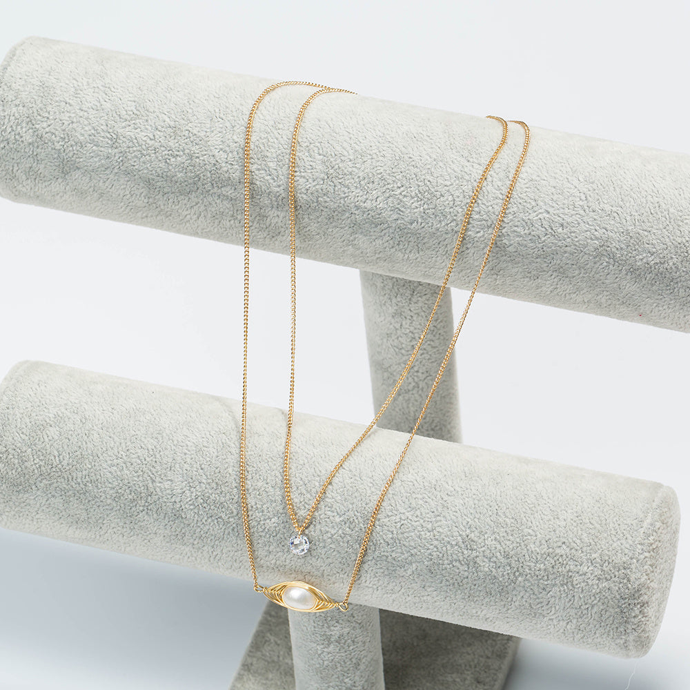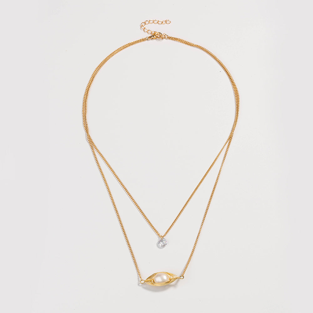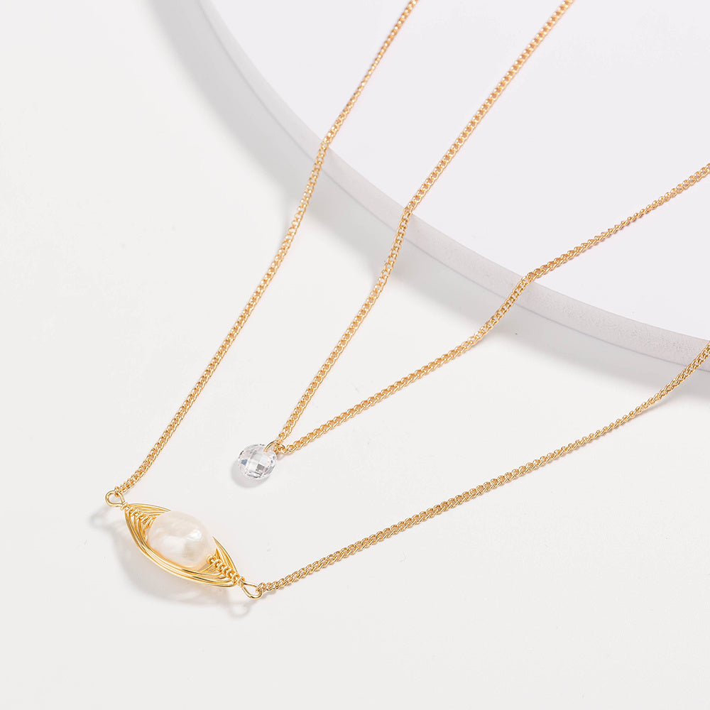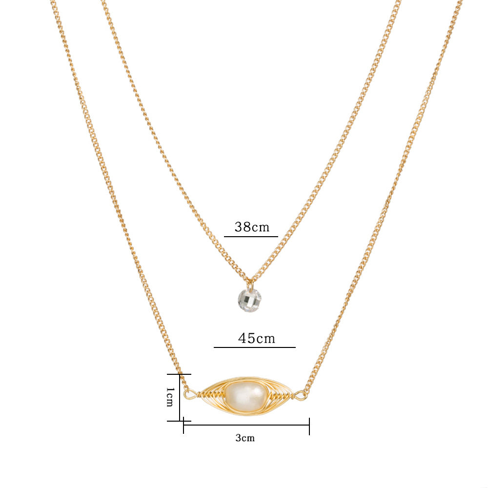 Home » Shop » Cross-border personality temperament natural freshwater pearl pendant necklace female translucent zircon simple double layered necklace